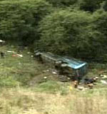 Legkevesebb tizennyolcan meghaltak, huszonnyolcan megsérültek, amikor egy esküvői menetet szállító busz alatt beomlott az út és a jármű 180 métert zuhant egy szakadékba India északi részén.