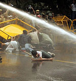 Könnygázzal és vízágyúval oszlatták szét a buszok ritkítása ellen tüntető tömeget