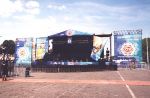 Az '56-osok terén már hétfő óta építkeznek: egy 300 négyzetméteres színpad készül 12 méteres belmagassággal. A téren hét kivetítőt állítanak fel, és három sorban állnak majd a hangoszlopok.