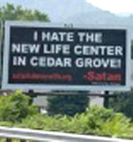 Félreértés ne essék, nem az ördög rendelte meg személyesen az óriásplakátot az amerikai 60-as út mellett. Pedig a hirdetés szövege lényegében így szól: Gyűlölöm a Cedar Grove-i templomot - a Sátán.