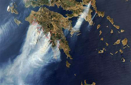 Az elmúlt három nap erdőtüzeiben 57 személy vesztette életét, ötszáznál több lakóépület, üzlethelyiség égett le, valamint több tízezer hektárnyi erdő. A görög kormány rendkívüli állapotot hirdetett ki az ország egész területén, miután a tüzek kiterjedtek a Peloponnészosz-félsziget teljes déli részére és más területekre is.