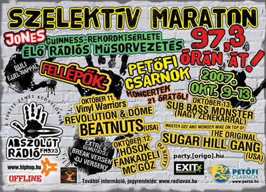 A Szelektív Maraton 2007. október 9. 17:00 órától október 13. 18:03-ig tart. A kitűzött cél: folyamatos műsorkészítés alvás nélkül. Ekkor lesz JoNeS 97,3 órája folyamatosan élő adásban és ezzel az a szándéka , hogy felhívja a figyelmet arra, hogy Magyaror