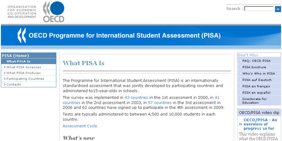 PISA= Programme for International Student Assessment - nemzetközi tanulói tudásszintmérő program