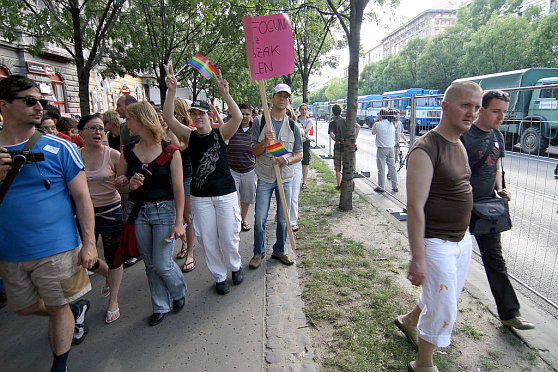 DobálnakFolyamatosan dobálják tojásokkal és sörös dobozokkal a melegek felvonulását az Andrássy út két oldalán álló ellentüntetők. Az MTI tudósítói szerint több embert eltaláltak már.