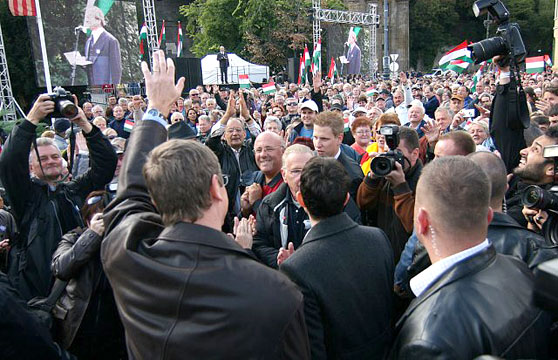 A radikális fiatalok még aránylag nyugodtak voltak a Hősök terére rendezett, kulturális programmal tarkított elmebajnokságon, viszont amikor vonulni kezdtek a Szabadság tér felé már kellően felbosszantották magukat, hogy ott aztán megkezdhessék országmentő harcukat a rendőrséggel. Repült ott minden, aminek ilyenkor repülnie szokás, szálltak a kövek, a Molotov-koktélok az egyik irányban, jött a válasz könnygáz formájában a rendőröktől, aztán mindenki szaladt amerre látott, vagy amerre éppen kergették. Az egyetlen új elem, amit sikerült a már hagyománnyá vált összecsapásba beemelni, az a cipődobálás volt. A nemzeti érzelmű fiatalok ugyanis cipőket kívántak elhelyezni a Szabadság téri szovjet emlékműnél, hogy ezúton emlékezzenek a kommunizmus és a „cigánybűnözés” áldozatairól. Ez azonban nem jött össze nekik, és hogy kárba ne vesszenek a lábbelik, ezért inkább a rendőrökre hajigálták őket az izgalom fokozása végett. (Kollégánknak később sikerült is találnia ott egy jó állapotban lévő bakancsot.)
