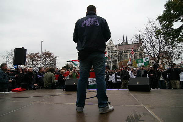 A Miniszterelnöki Hivatal előtti teret a rendőrség fémkordonokkal körbezárta, csoportokban, rendőri biztosítás mellett vonultak be a Videoton, az Újpest, a Ferencváros és a Kispest szurkolói, miközben "Vesszen Trianon", "Ria, ria, Hungária" jelszavakat skandáltak, és Ján Slotát - a Szlovák Nemzeti Párt elnökét - szidalmazták. A "Szlovákia egy múló állapot", "Nem felejtünk" feliratokat, nemzeti színű, árpádsávos és klubzászlókat lobogtató demonstrálók egy hatalmas transzparenst feszítettek ki, amelyre azt írták "Ne bántsd a magyart".