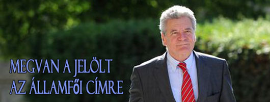 Joachim Gauck evangélikus lelkészt, keletnémet polgárjogi harcost, a volt NDK állambiztonsági iratait kezelő hivatal első vezetőjét jelöli a Német Szövetségi Köztársaság elnöki tisztségére a konzervatív-liberális kormánykoalíció az ellenzéki szociáldemokratákkal és a Zöldekkel közösen - jelentette be vasárnap este Berlinben Angela Merkel kancellár, a kereszténydemokrata CDU elnöke.