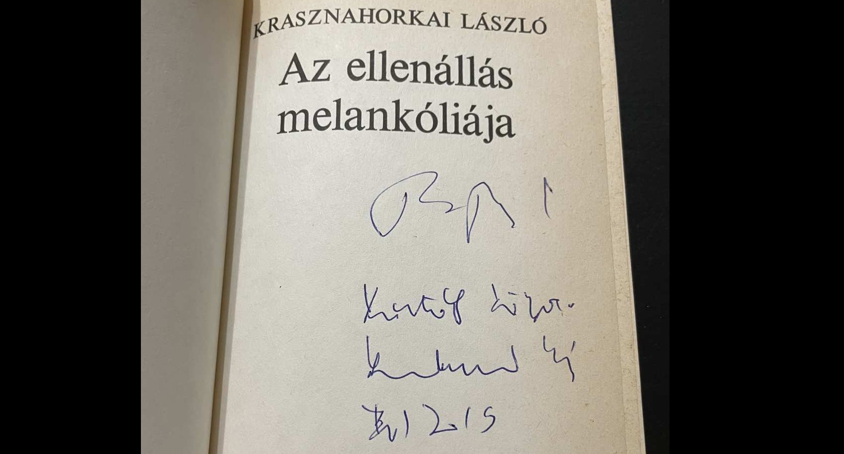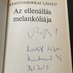 Négyszázezer forintért tette fel a Tarr Béla és Krasznahorkai László együttes dedikációját tartalmazó Az ellenállás melankóliája című kötetet egy felhasználó az egyik legnépszerűbb magyar hirdetési oldalra. A könyv – amelynek alapján Tarr Béla a Werckmeister harmóniák (2000) című filmjét is készítette – már ettől is döbbenetesen egyedi és értékes, ráadásul azonban ez Krasznahorkai kötetének legelső, 1989-es kiadása, amiből mindössze 500 példányt adtak ki, ez is ad különlegességéhez. A Nobel-díjas író és az egy hete elhunyt filmrendező 2015-ben dedikálták a kötetet, ami minden szempontból felbecsülhetetlen érték.