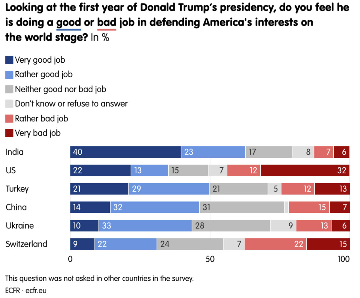 A legtöbb országban Donald Trumppal szemben alacsonyabbak az elvárások, mint 12 hónappal ezelőtt. Hatalomba való visszatérésének első éve egyes térségekben – köztük Indiában és Dél-Afrikában – látványos véleményváltozásokat idézett elő.