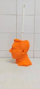 A Redditre töltötte fel a stílszerűen narancssárga modellt PessziMiska nevű: felhasználó, „Lézeres WC-kefe tartóként” leírva az alkotást. S el is helyezett egyet egy vasúti vécében, legyen mivel takarítani. Itt nem áll meg a történet, egy másik internetes csoportban is felbukkant egy, vélhetően ugyancsak 3D-nyomtatással készült Lázár-kefetartó. Készítője megosztotta a nyomatási paramétereket: „aki akarja, nyomtassa bátran és tegyétek a vonat mosdójába