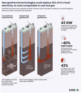 A Hot stuff: geothermal energy in Europe című friss európai elemzés szerint a geotermikus villamosenergia-termelés technológiai áttörés előtt áll: az új fúrási és rezervoár-mérnöki megoldások jelentősen bővítik azon térségek körét, ahol gazdaságosan lehet földhőből áramot előállítani. A tanulmány különösen kedvező helyzetbe sorolja Magyarországot.
