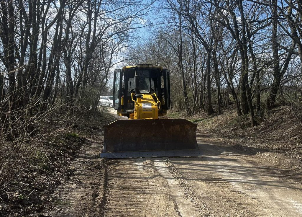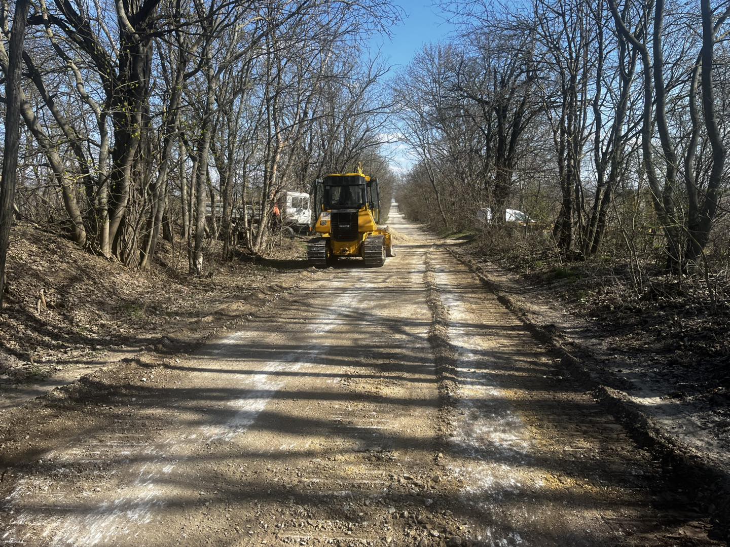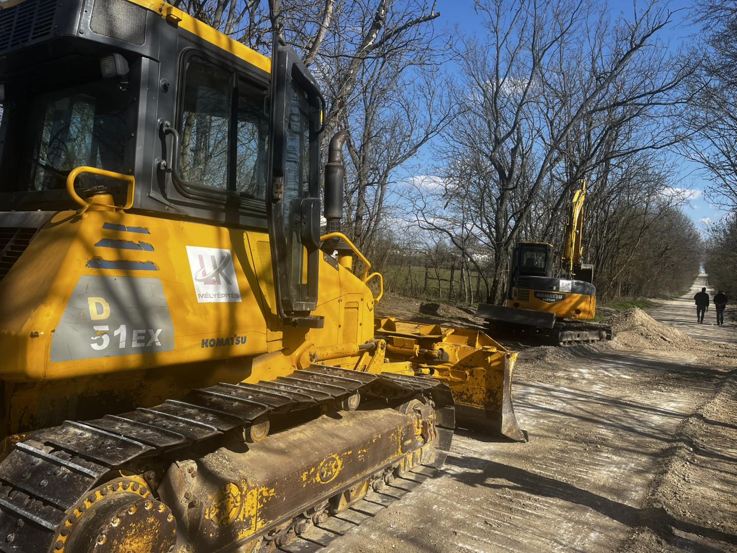 Fotón, ahogy éppen tükörsimára egyengetik a Hatvanpusztára vezető, közforgalmú bekötőutat