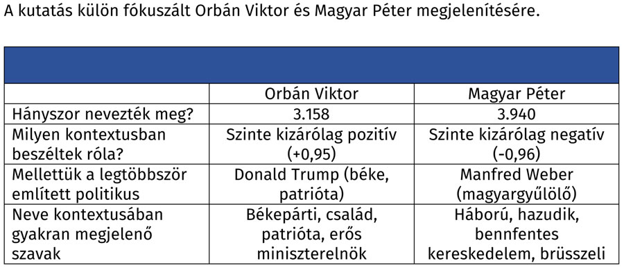 Ezzel szemben az ellenzéki politikusok képernyőideje nem érte el az 5 százalékot, és szerepléseik jelentős része negatív kontextusban történt. A kutatás szerint a kormányoldal gyakorlatilag egyáltalán nem jelent meg kritikus keretezésben.