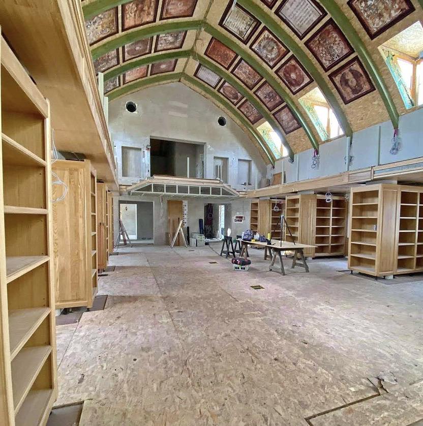 Hadházy egyébként újabb videót is publikált, mely még a hatvanpusztai birtok építése idején készült. A könyvtár freskója pedig egy ponton így nézett ki: