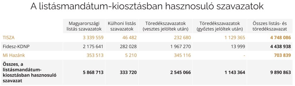 A listásmandátum-kiosztásban hasznosuló szavazatok