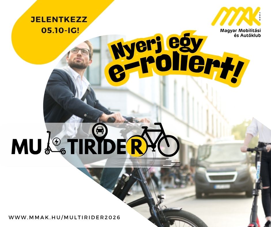 Multirider versenyük többféle közlekedési eszköz használatát szimulálja, amit immár harmadik alkalommal hirdetnek meg. A „Multirider 2026” közlekedésbiztonsági és ügyességi versenyre 2026. május 10-ig várja a jelentkezéseket a Magyar Mobilitási és Autóklub. A kezdeményezés célja, hogy a résztvevők fejlesszék közlekedési tudásukat. A versenyen azok a 18 év feletti résztvevők indulhatnak, akik érvényes B kategóriás jogosítvánnyal és magyarországi lakcímmel rendelkeznek.