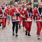 Pirosba borul Budapest belvárosa december 7-én, vasárnap: a jubileumi, 10. PENNY Mikulásfutáson minden eddiginél több, 4500 jelmezes futó árasztja el az utcákat.